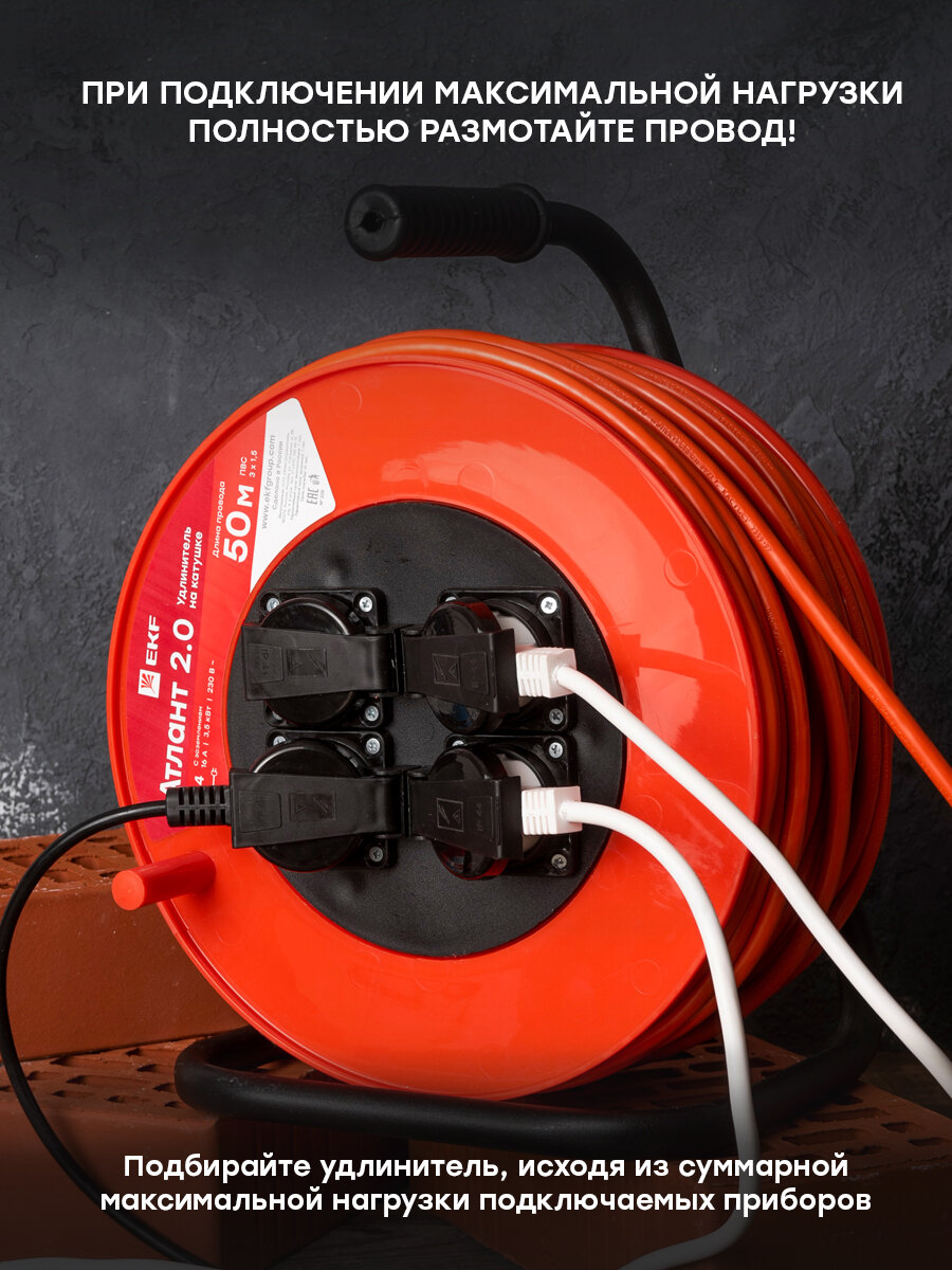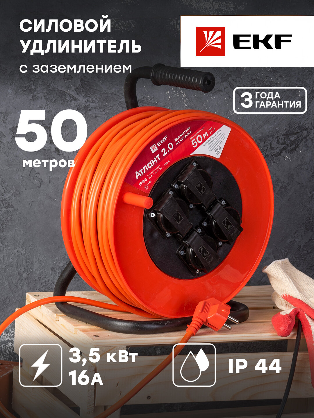 Удлинитель на катушке EKF UKA02-16-315-4-50-IP44 "Атлант 2.0" 4 гнезда 50м с заземлением ПВС 3*1,5