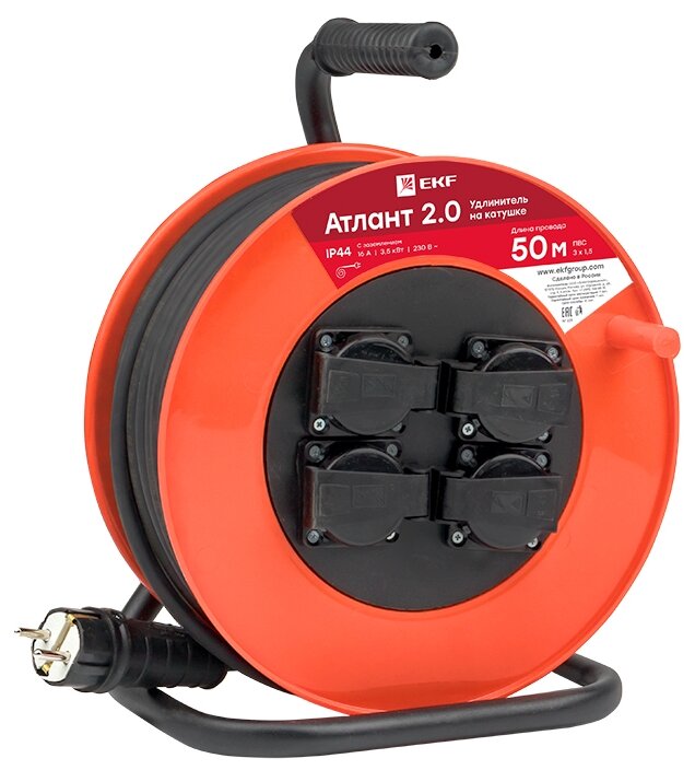Удлинитель на катушке 4х50м с заземл. 16А IP44 Атлант 2.0 ПВС 3х1.5 3.5кВт PROxima EKF UKA02-16-315-4-50-IP44