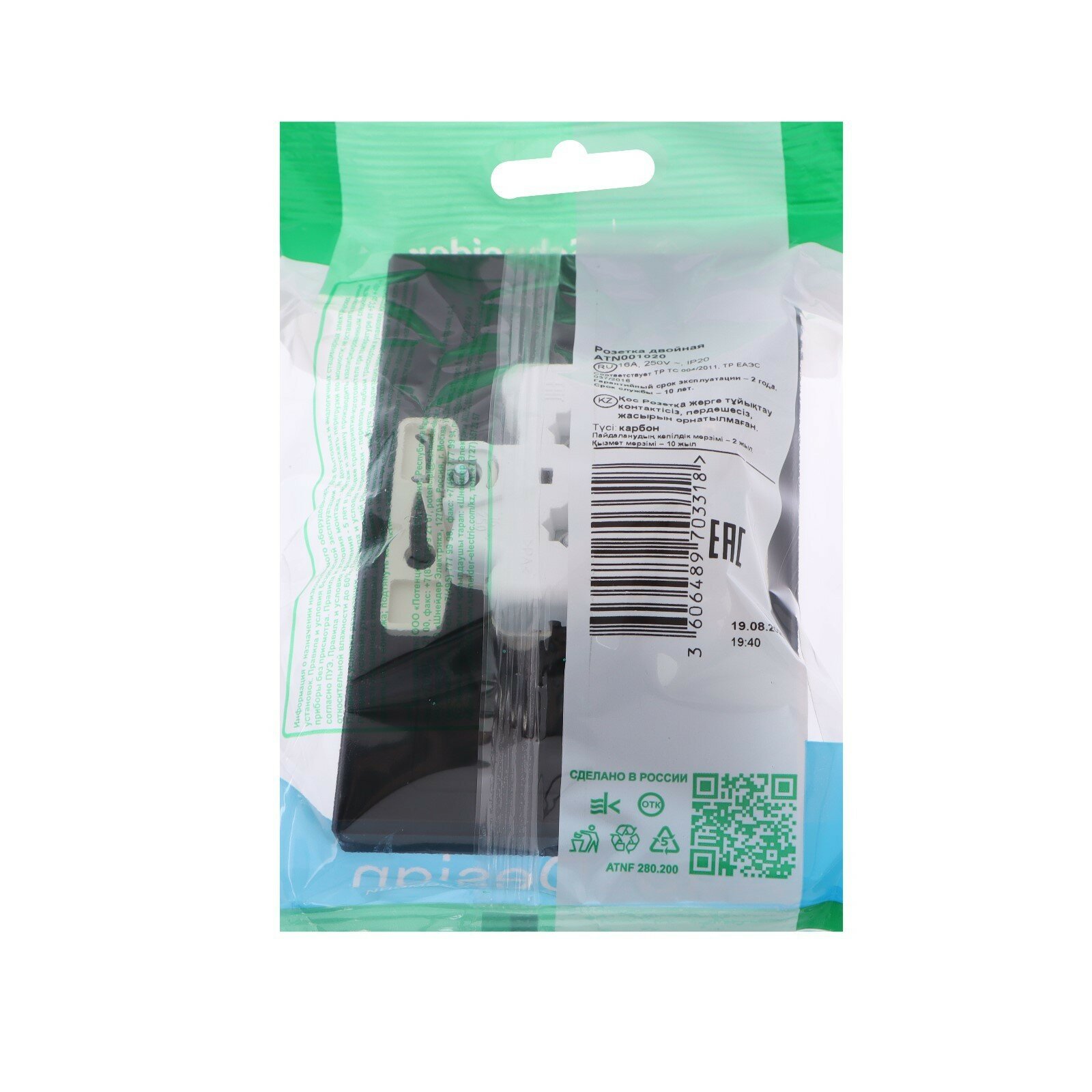 Розетка двухместная ATLASDESIGN, скрытый монтаж, карбон | код. ATN001020 | Schneider Electric (3шт. в упак.)