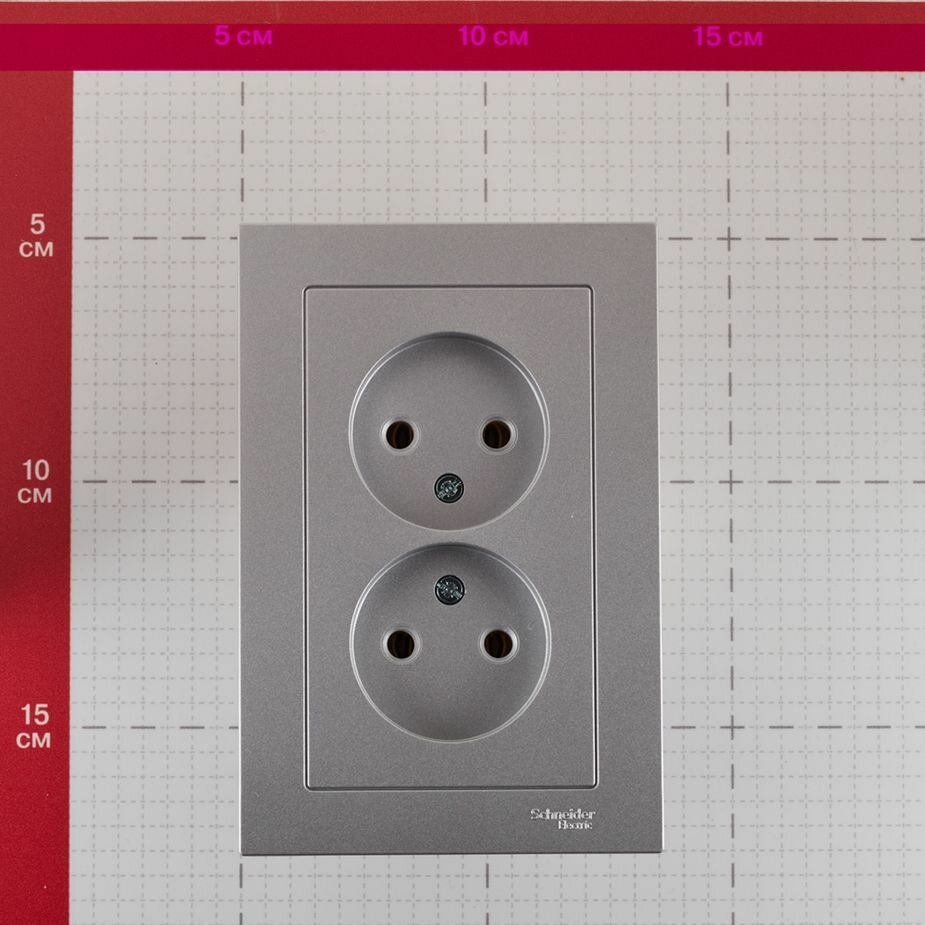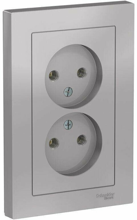 Розетка двойная Schneider Electric AtlasDesign без заземления в сборе. Алюминий