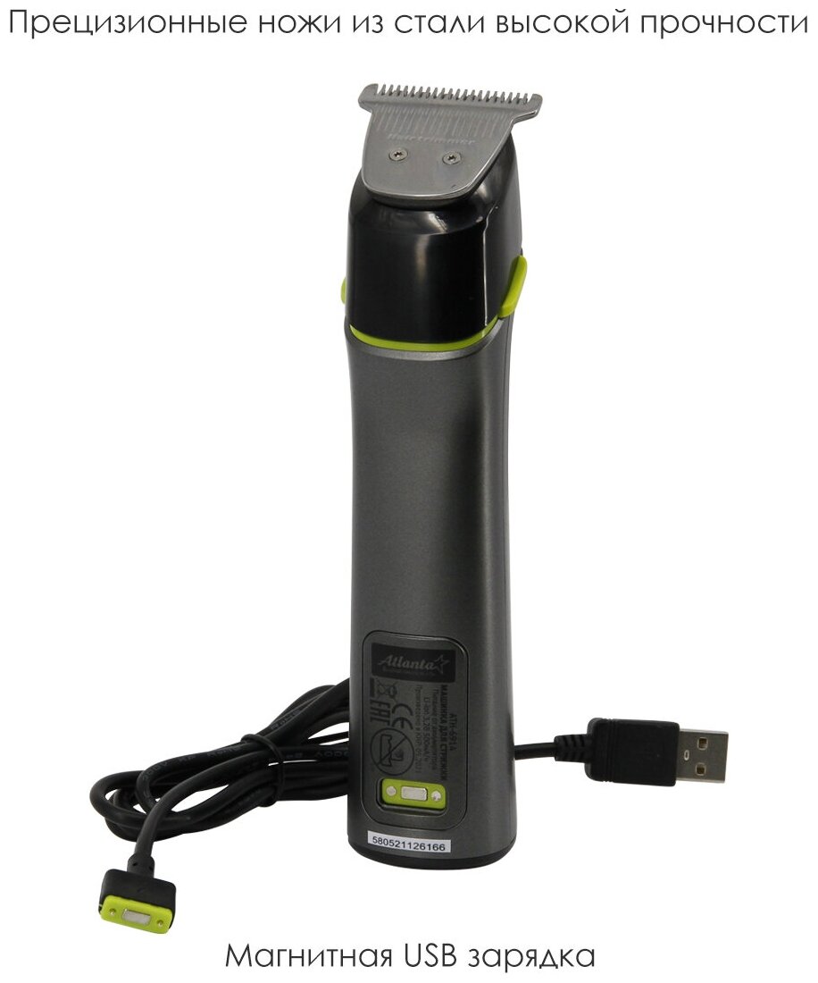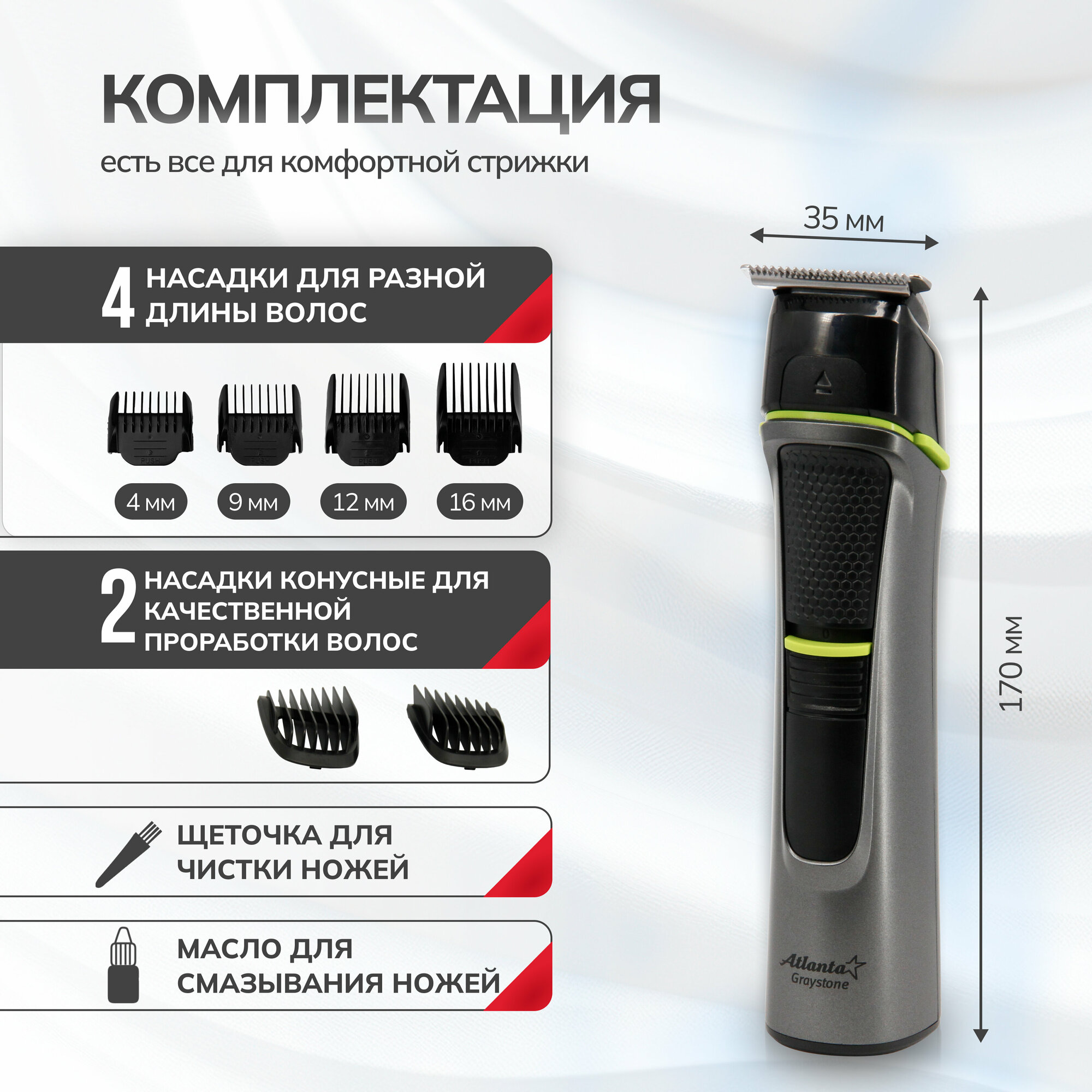 Машинка для стрижки ATLANTA ATH-6914 6 насадок, серый