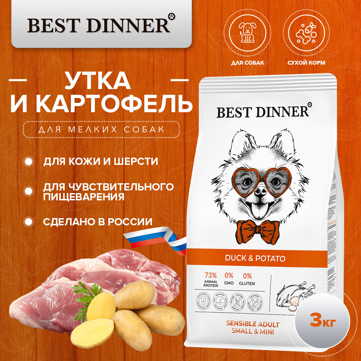 Купить Сухой корм Best Dinner 3кг Mini Sensible Duck&Potato для собак мелких пород с чувствительным пищеварением с уткой и картофелем