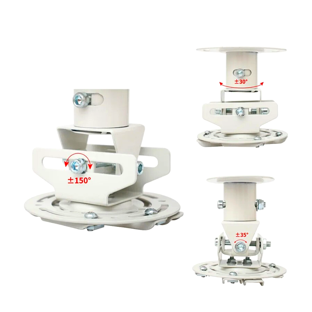 Кронштейн для проектора UniTeki PM2002 потолочный универсальный наклонно поворотный фиксированный, макс. нагрузка до 21 кг, белый