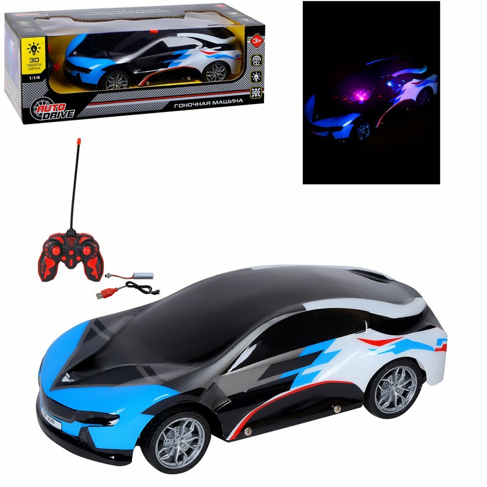 Машинка на радиоуправлении AUTODRIVE гоночная 1:14 с пультом 4 канала 27MHz 3D подсветка корпуса
