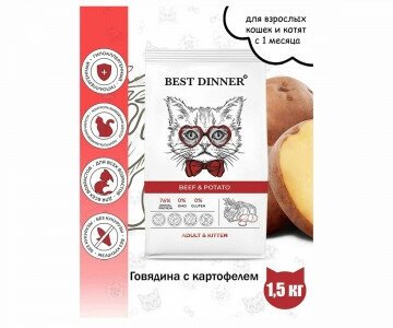 Купить Сухой корм Best Dinner 1.5 кг Beef&Potato для котят и взрослых кошек, с говядиной и картофелем