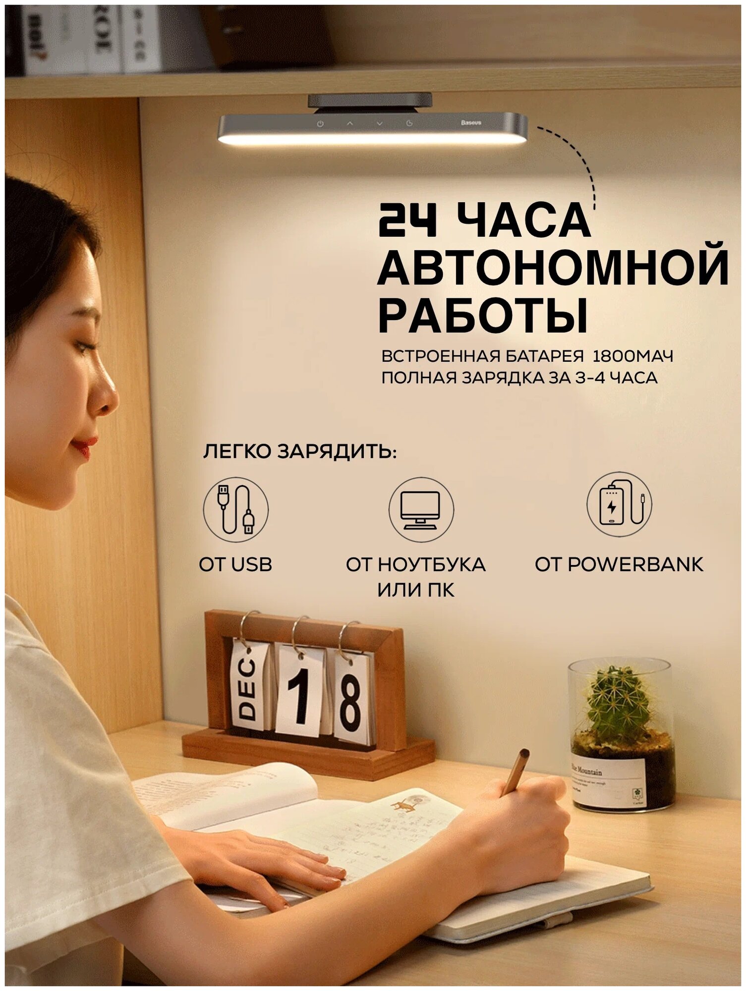 Аккумуляторный светильник на магните Baseus Magnetic Stepless Dimming Charging Desk Lamp deep grey