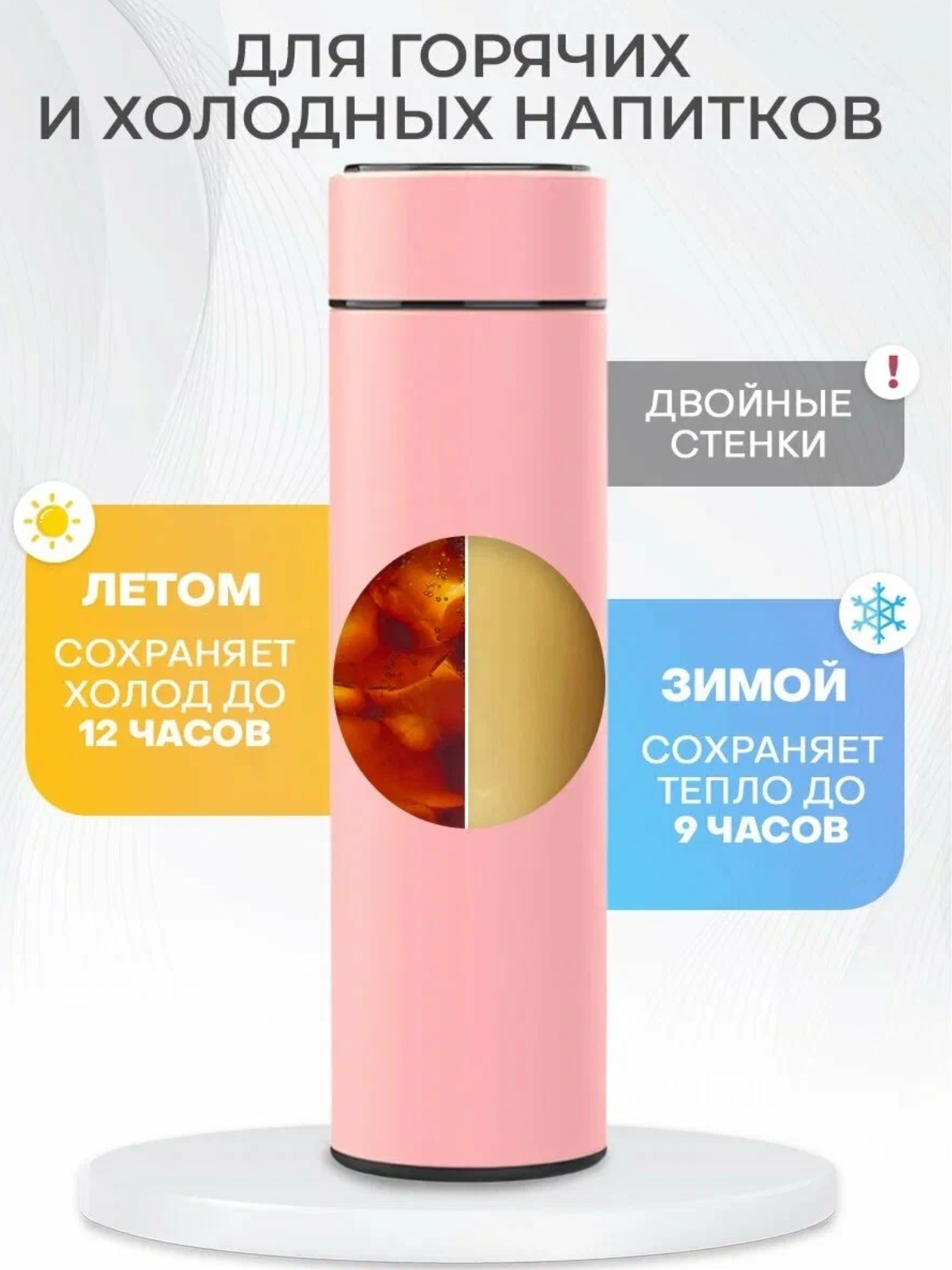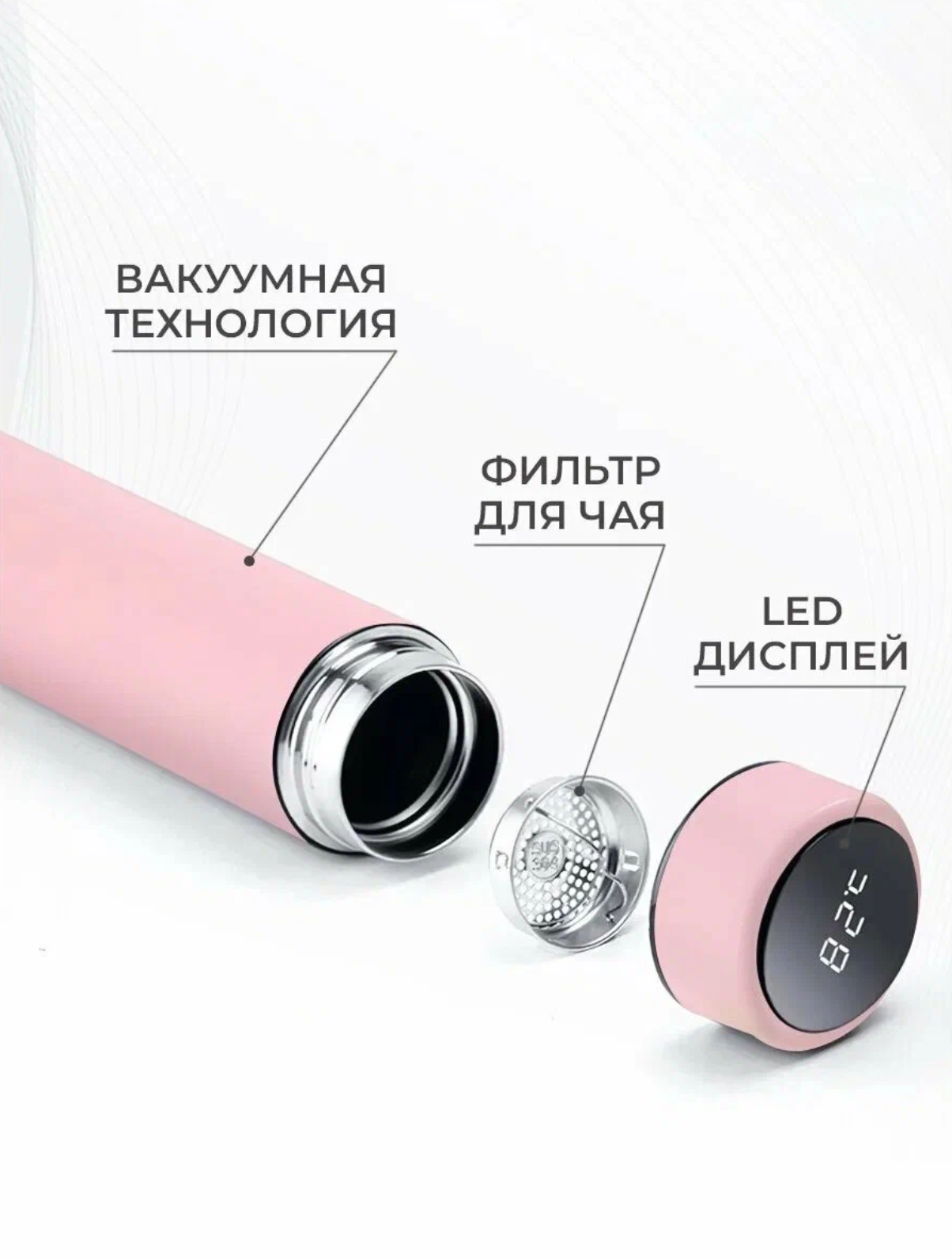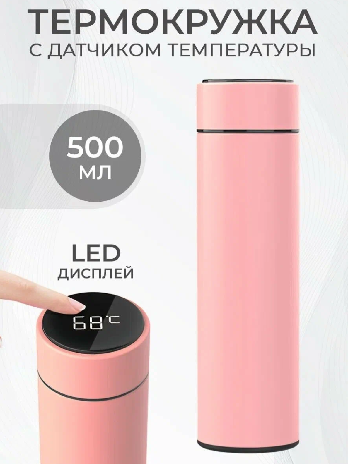 Термос с LCD дисплеем Розовый / Термос с датчиком (индикатором) температуры / Термобутылка / Автокружка