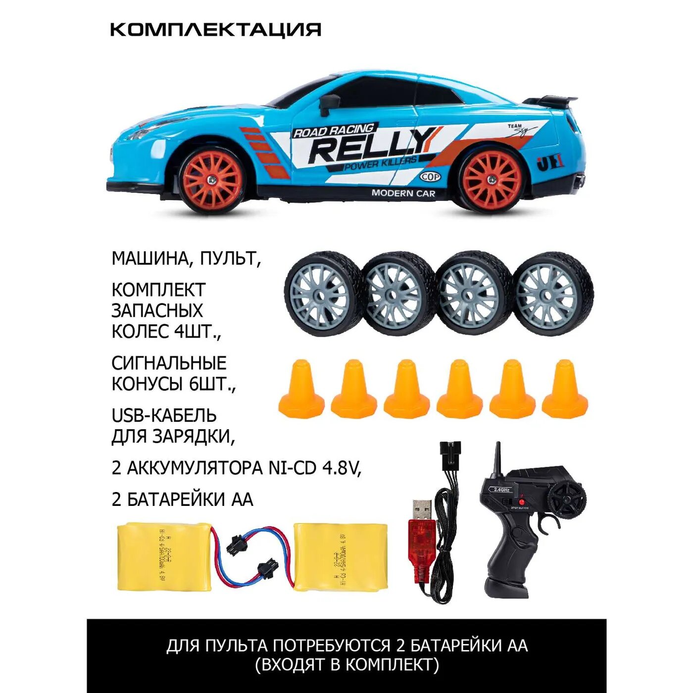 | Комплектация | машина, пульт управления, съемный аккумулятор, зарядное устройство, 4 запасные шины, 6 конусов |