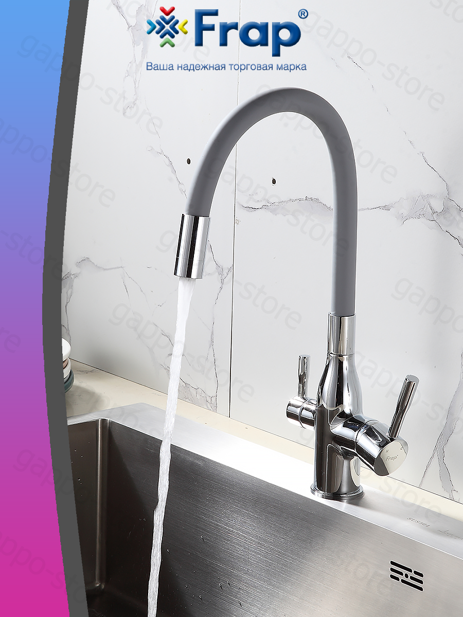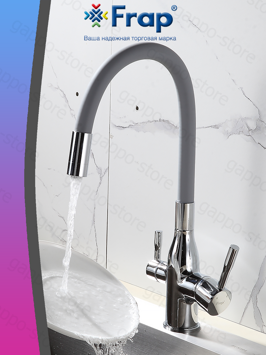 Смеситель для кухни под фильтр с гибким, поворотным изливом Frap F4396 хром,серый