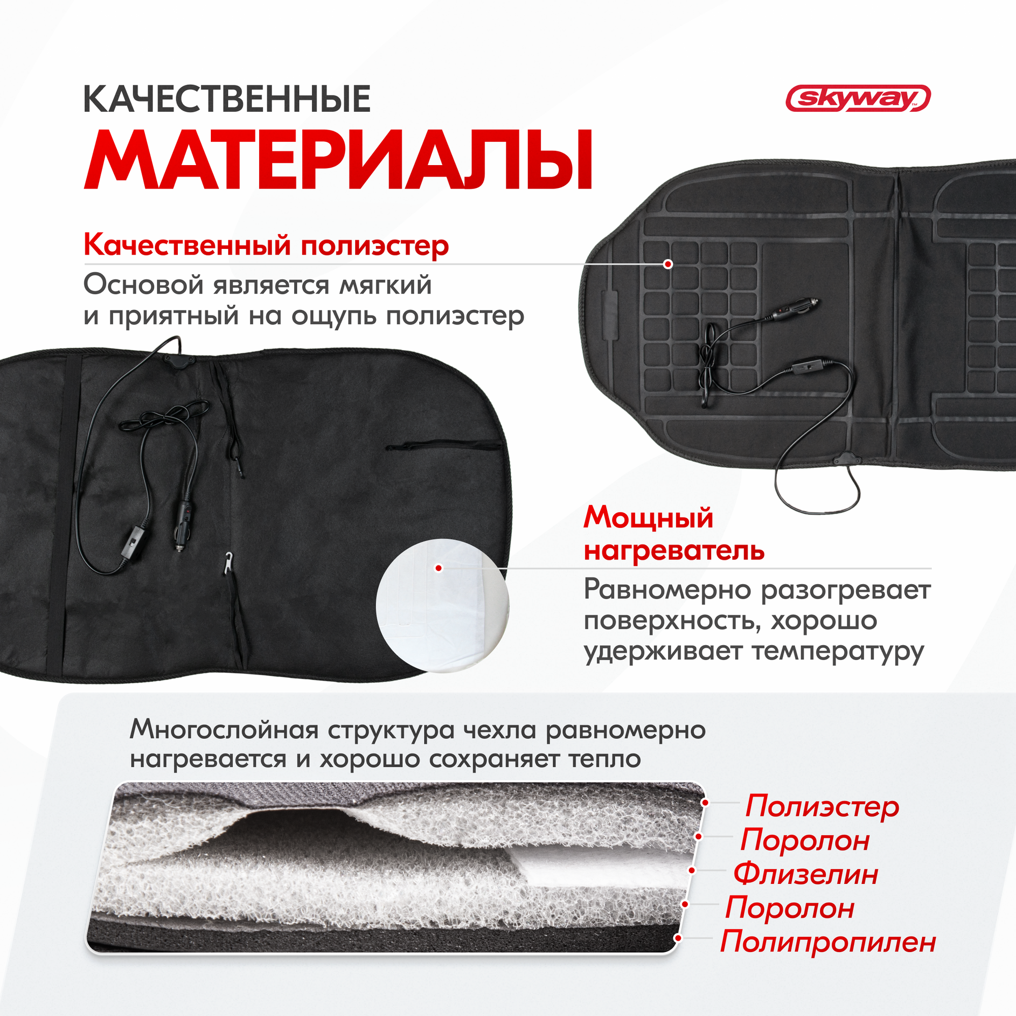 Купить SKYWAY Подогрев сиденья со спинкой с терморегулятором 98х52см 12V Черный 2,5А-3А S02201013