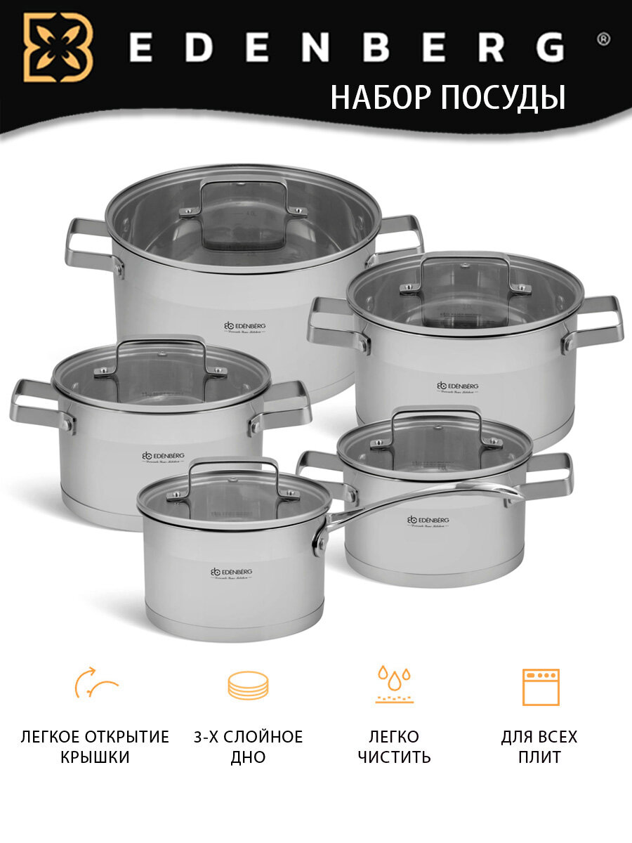 Набор посуды с сотейником 10 пр, из нержавеющей стали / пищевой / кастрюль / с крышками / всех типов плит / индукционной плиты интересное: